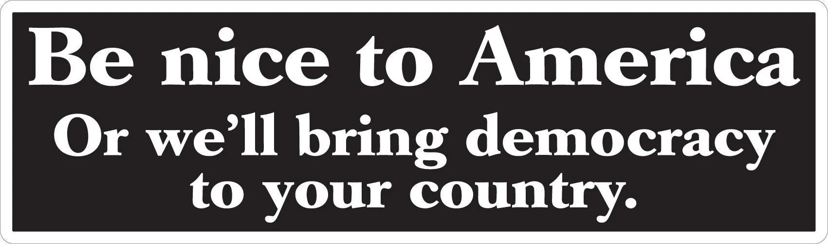"Be Nice to America or We'll Bring Democracy To Your Country" (BLACK Decal)