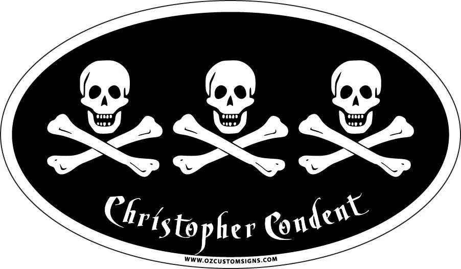 Pirates! - Christopher Condent Pirate Flag Oval - Full Color Decal / Sticker!